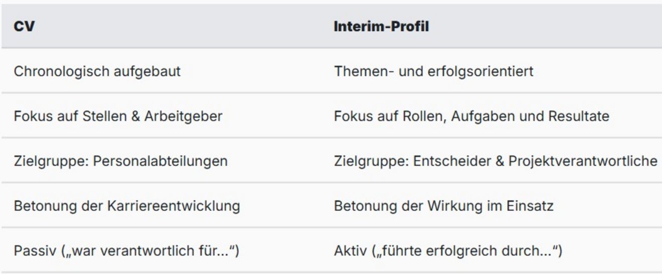 Was unterscheidet das Interim-Profil vom klassischen CV?